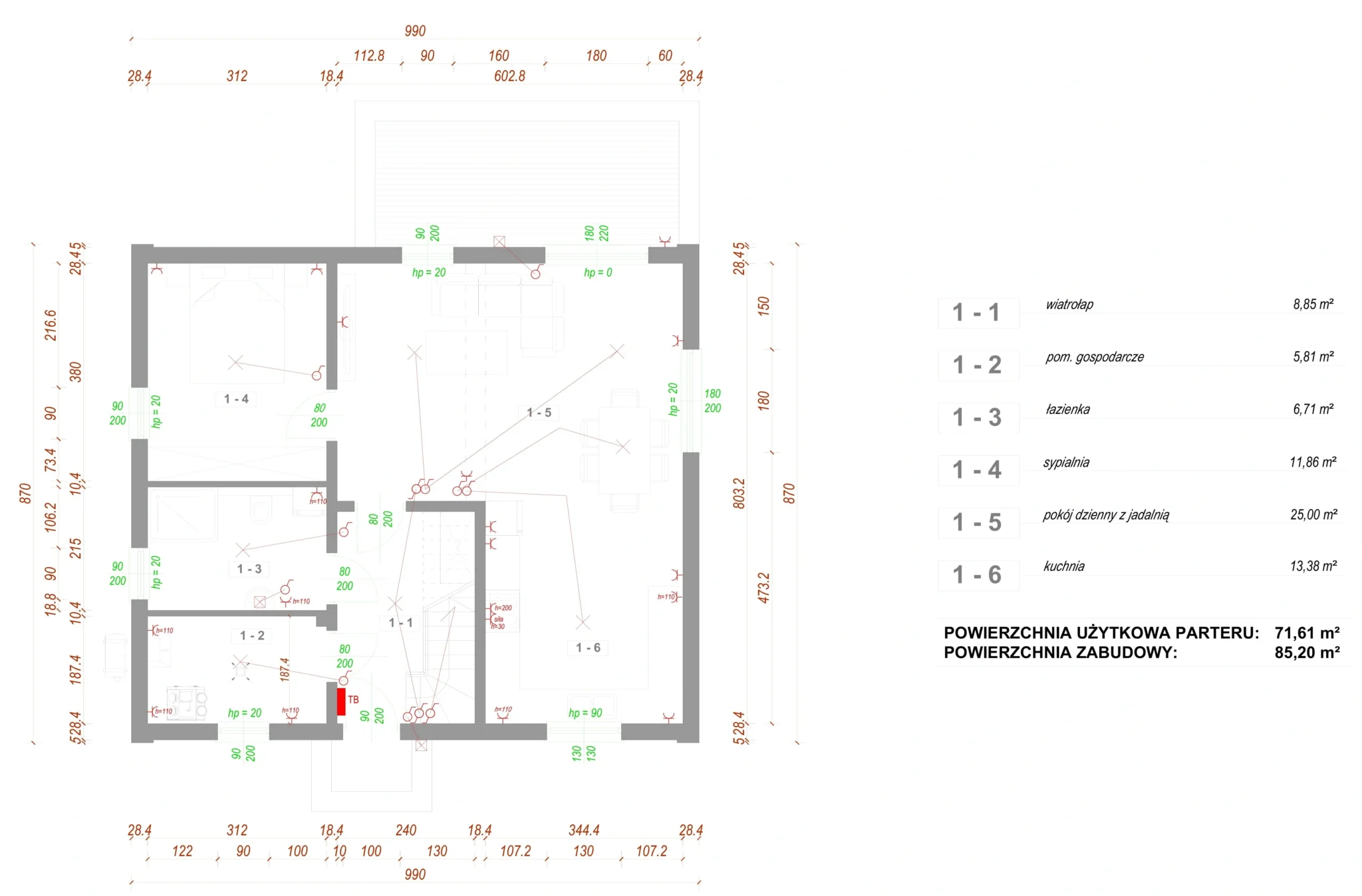 • wiatrołap: 8,85 m2